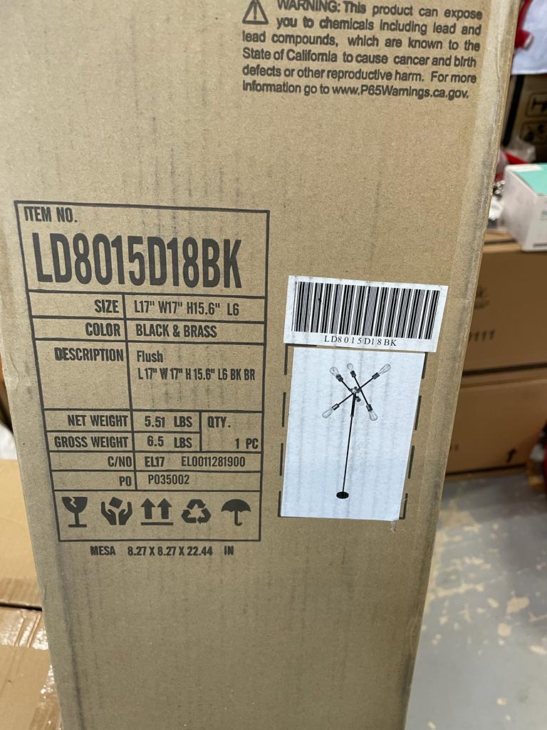 - Axel Black and Brass 17-Inch Six-Light Pendant.
