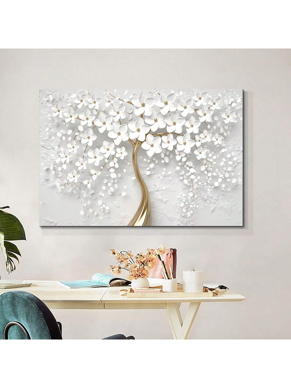 WHITE FLOWERS GOLD TREE FLORAL WRAPPED CANVAS