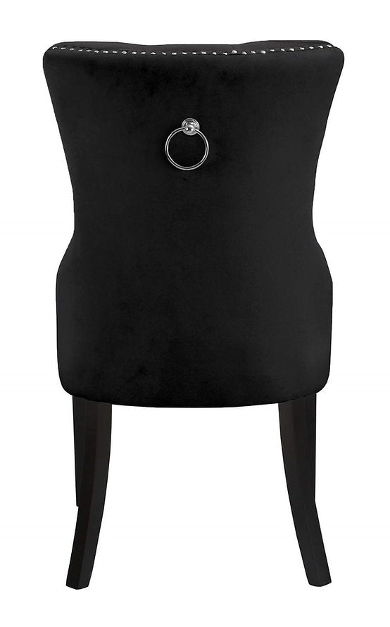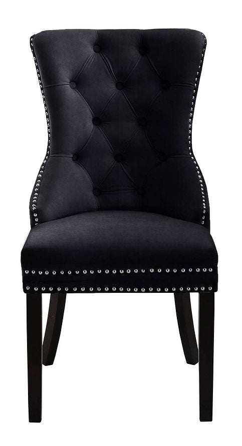 Material: Black Velvet Dining Chair with Nail Head Details; Tufted, Wood Legs