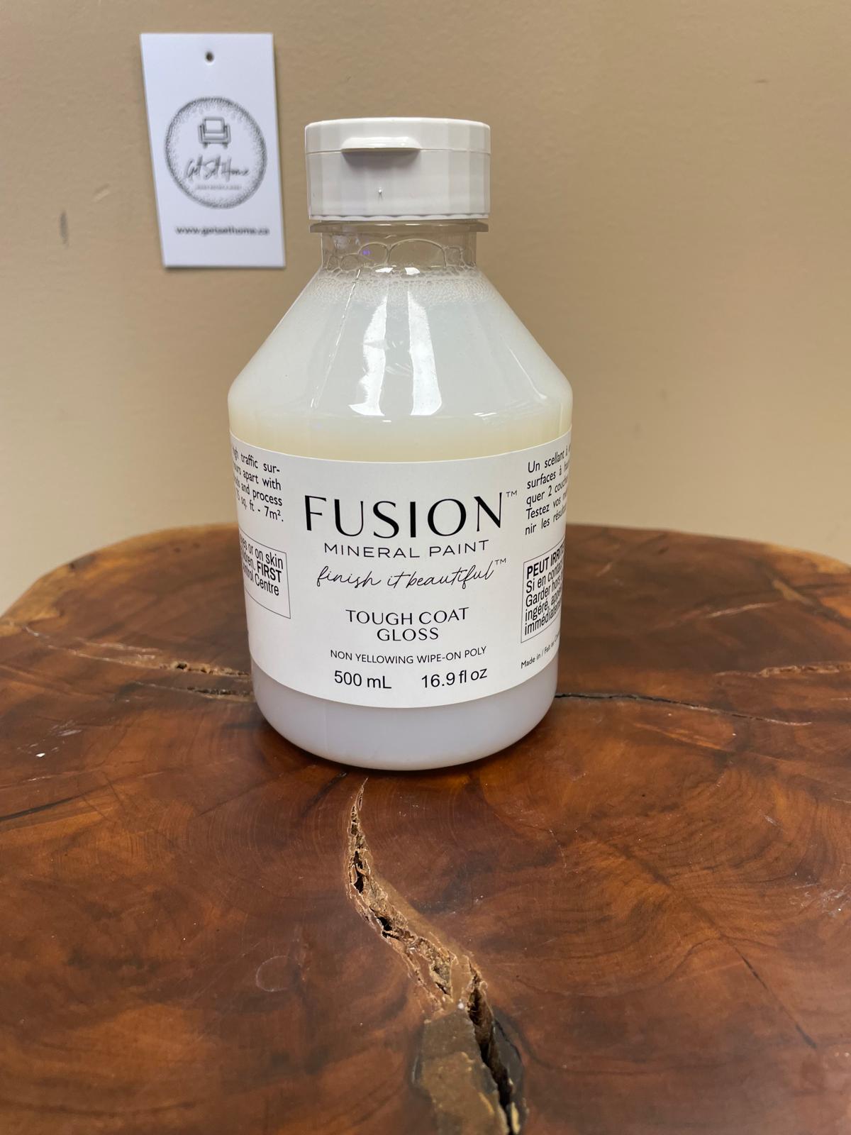 Fusion's non-yellowing water-based Tough Coat comes in 2 sheens, matte and gloss. It is perfect for those high traffic surfaces such as tabletops. Easy to apply using a sponge for a smooth application, adding extra durability and increased sheen to your painted pieces.