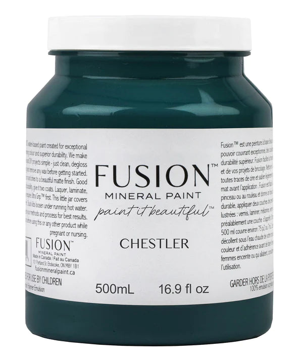 Note: Priming is usually not necessary with Fusion Mineral Paint. For bleed-through or knots, use Zinsser BIN Shellac-based primer. For dark-to-white transitions, use a mid-tone colour like Sterling as a primer.