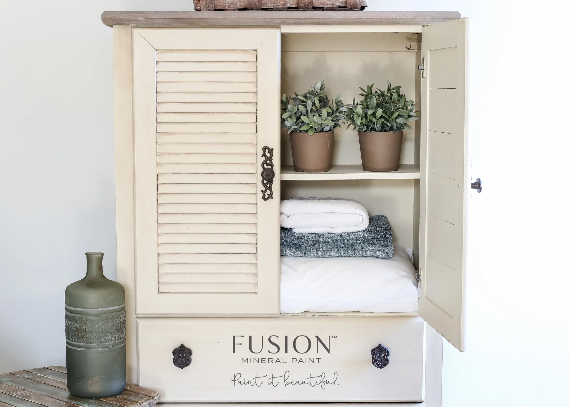Note: Priming is usually not necessary with Fusion Mineral Paint. For bleed-through or knots, use Zinsser BIN Shellac-based primer. For dark-to-white transitions, use a mid-tone colour like Sterling as a primer.