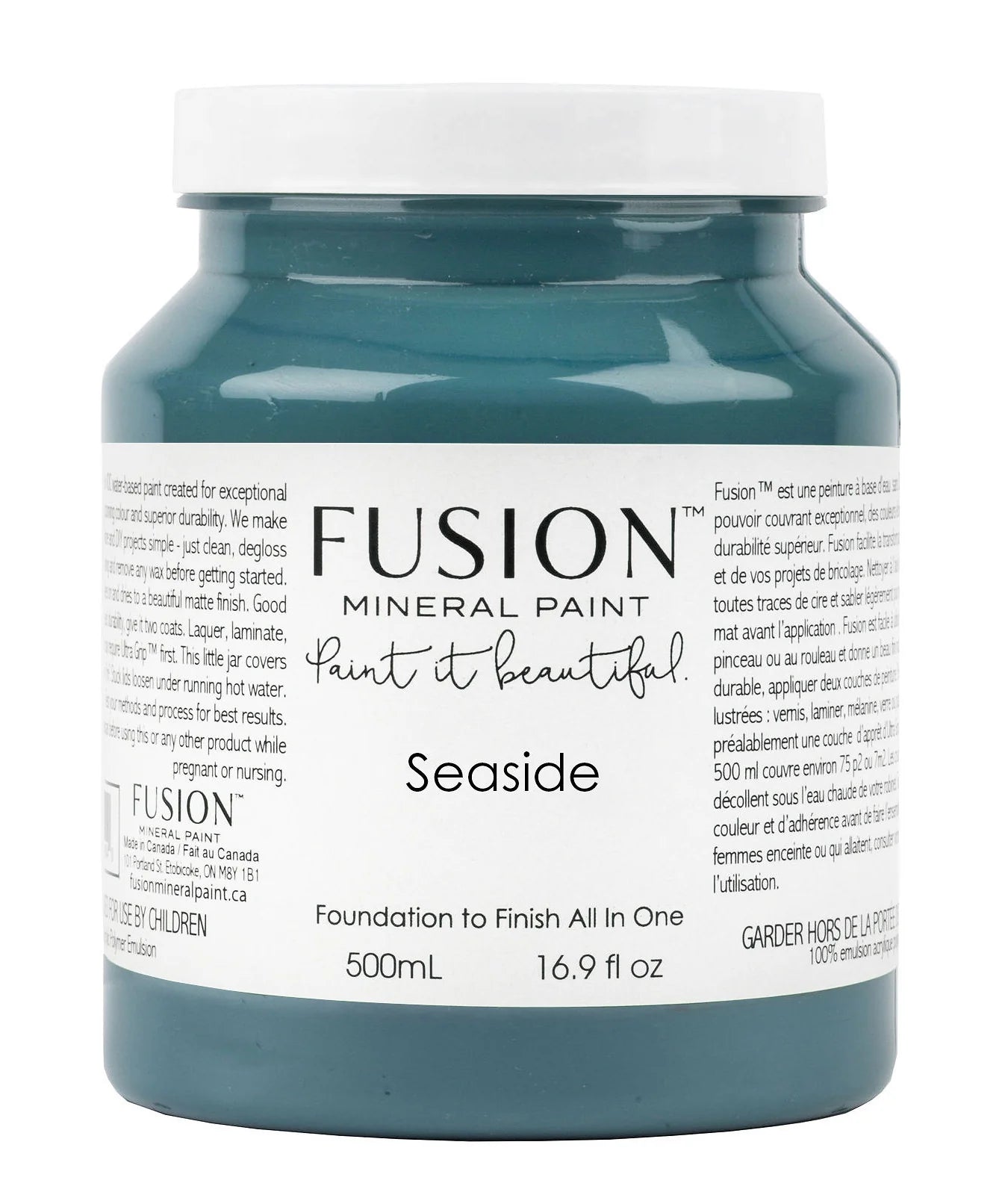 Note: Priming is usually not necessary with Fusion Mineral Paint. For bleed-through or knots, use Zinsser BIN Shellac-based primer. For dark-to-white transitions, use a mid-tone colour like Sterling as a primer.