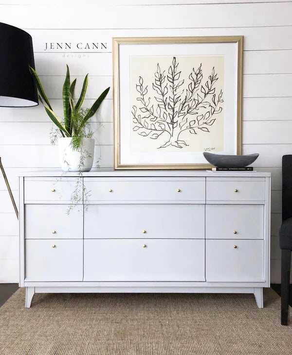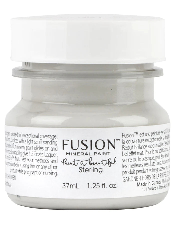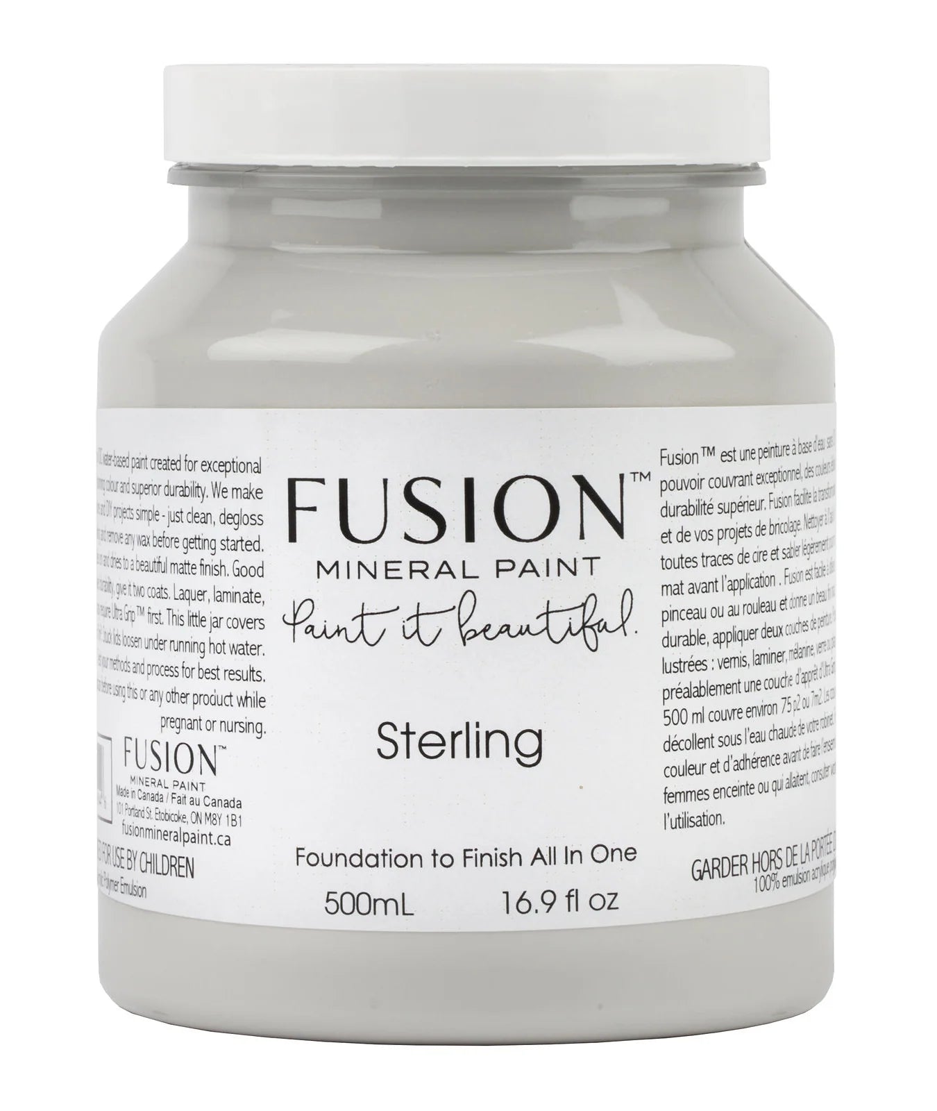 Note: Priming is usually not necessary with Fusion Mineral Paint. For bleed-through or knots, use Zinsser BIN Shellac-based primer. For dark-to-white transitions, use a mid-tone colour like Sterling as a primer.