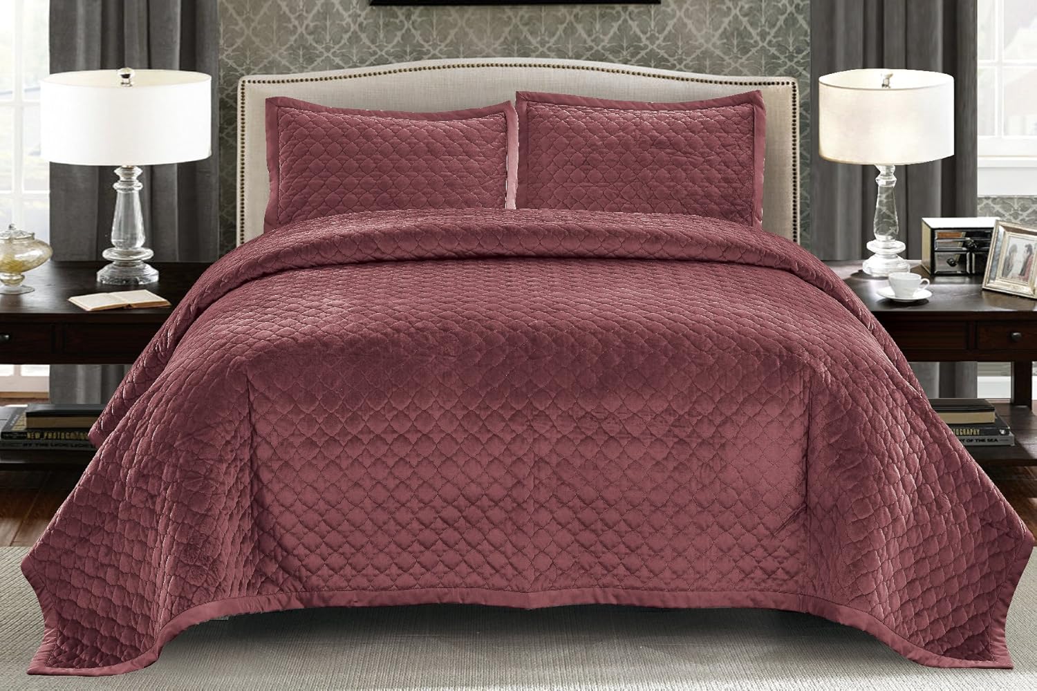 KING - 3 PIECE Tiberius Velvet Quilt Set in Red Clay