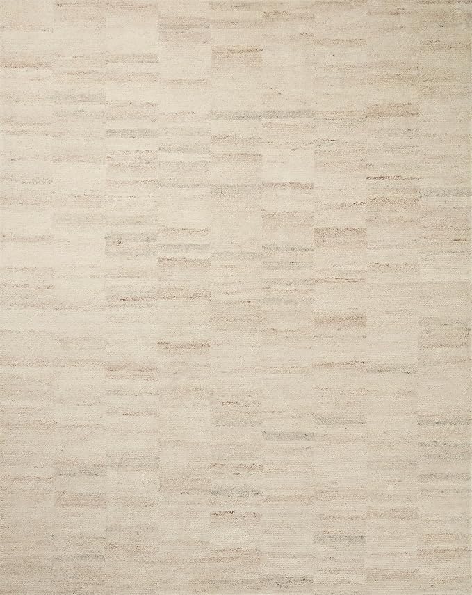 The Rocky Collection area rug by Amber Lewis x Loloi is uniquely hand-tufted with undyed wool to create a subtle and natural color contrast. The Rocky Collection can be a refreshing foundation in living rooms, bedrooms, and dens. The rug's Moroccan-inspired design features asymmetrical geometric patterns that blend seamlessly with a range of decor styles. Made with hand-tufted wool in India and GoodWeave-certified.