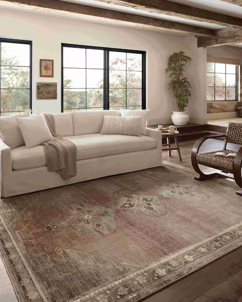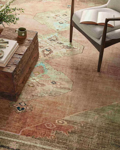 The Sinclair Collection for Magnolia Home by Joanna Gaines x Loloi offers exceptional softness and durability, on par with traditional power-loomed rugs, while also minimizing waste in its production. Machine-washable for easy care, these rugs are perfect for high-traffic areas such as living rooms, hallways, entryways, and children's rooms. Featuring antique-inspired motifs with delicate detailing and subtle distressing, the design adds a refined, timeless charm to any space.