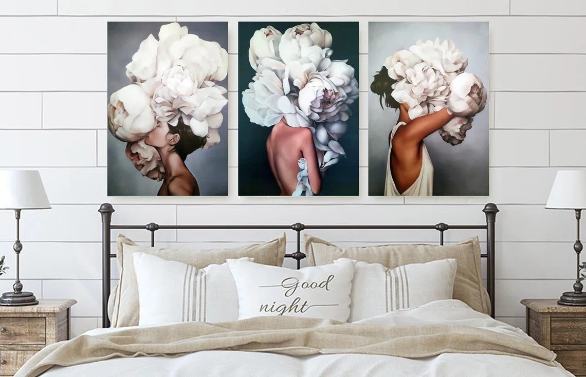 PEONIES FLOWER GIRL WRAPPED CANVAS - SET OF 3 PANELS